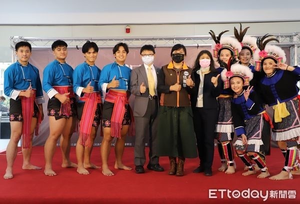 ▲台科大校長顏家鈺(左五)立委伍麗華(左六)與原住民學生合影。(圖/台科大提供)